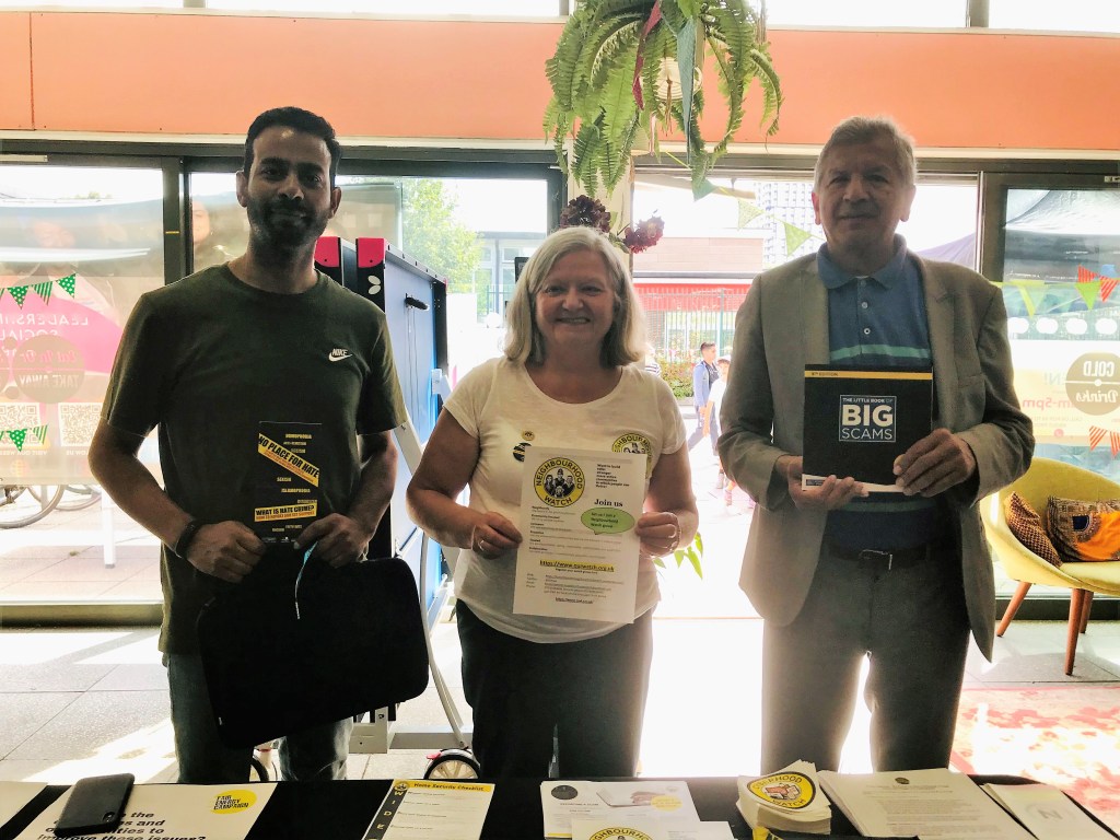 Crissy Townsend is an outstanding community activist who founded the Teviot Community Action GroupThis is I, the Tower Hamlets Neighbourhood Watch membership administrator. I also helped visitors from other areas of England with signing up for Neighbourhood Watch, as you can sign up from anywhere in Britain and act within your local community as volunteer. I was very pleased that Unmesh Desai, from the London Assembly and Councillor Kahar Chowdhury, chair of the Labour group Strategic Development Committee and Cabinet member for Highways and Public Realm posed for pictures and Unmesh also follows us now on Twitter.